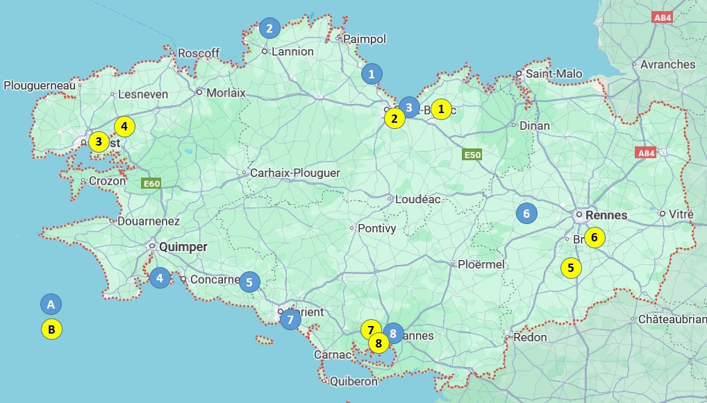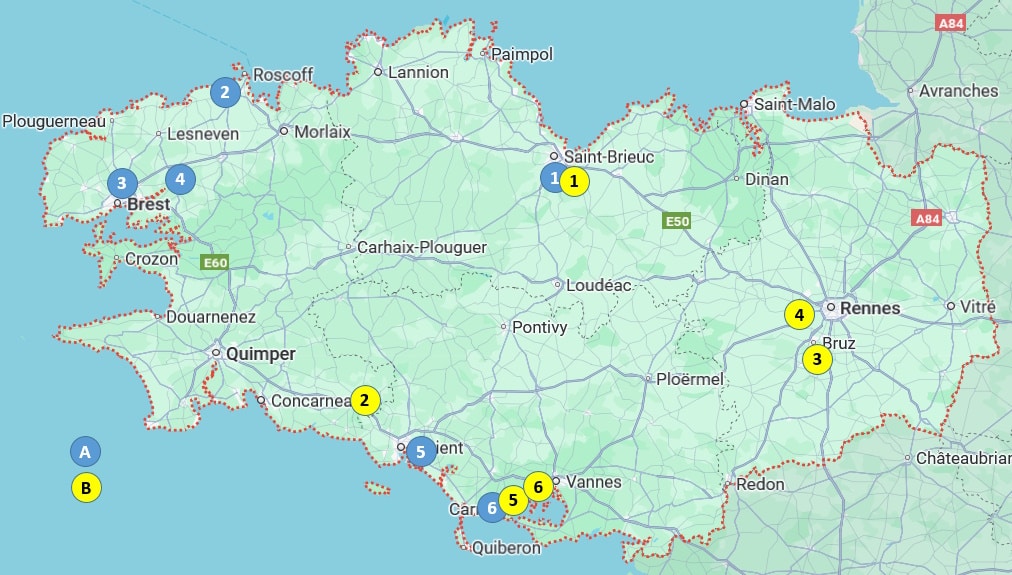 Plérin, St Julien, Fouesnant,Plounéour-Ménez 2, St Jacques, Bourg-des-Comptes 2, Lanester 2 et Locmariacquer montent de CDC pour 2025